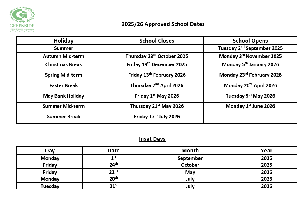 Find below information on School Holidays for the academic year.